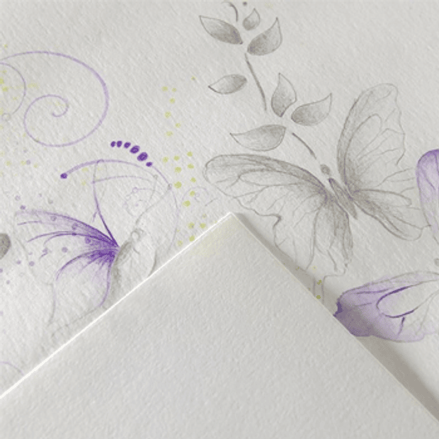 Imagine é um papel para técnicas mistas que oferece um toque excelente, um meio termo entre seda e veludo. Possui um aspeto branco natural bonito.
